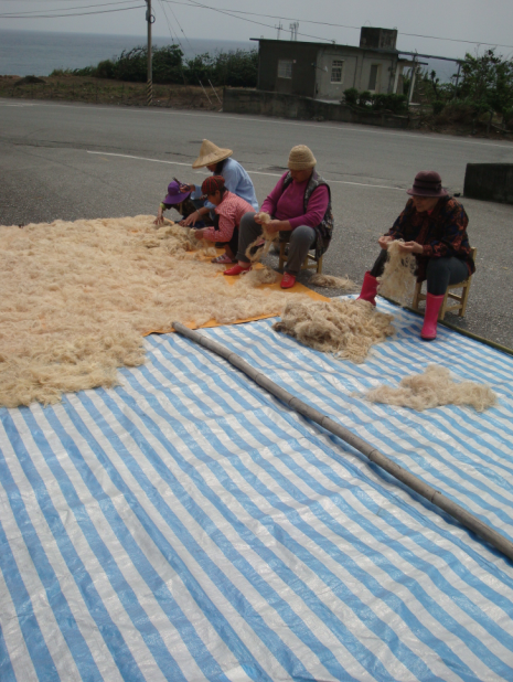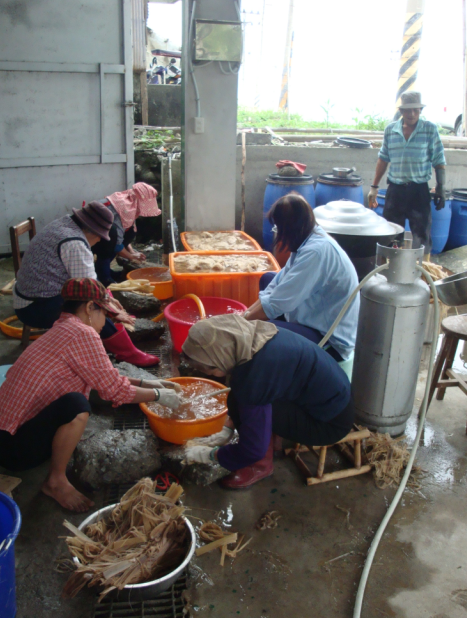 看看我們的香蕉媽媽們這麼努力的刮阿~洗阿~曬阿~
